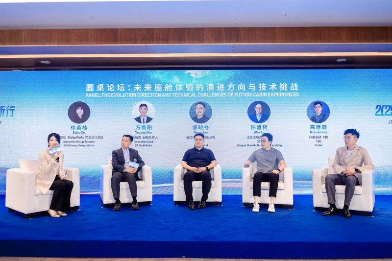 最后进入圆桌讨论环节,由宝马集团DesignWorks 交互设计总监徐英楠女士主持,邀请了宝马诚迈信息技术创新负责人万雨阳先生,诚迈科技执行副总裁邹晓冬先生,浅觉深知咨询CEO陆盛贇先生,科美创研CEO高懋森先生,就未来座舱体验的发展方向与技术挑战等议题进行了深入交流。
