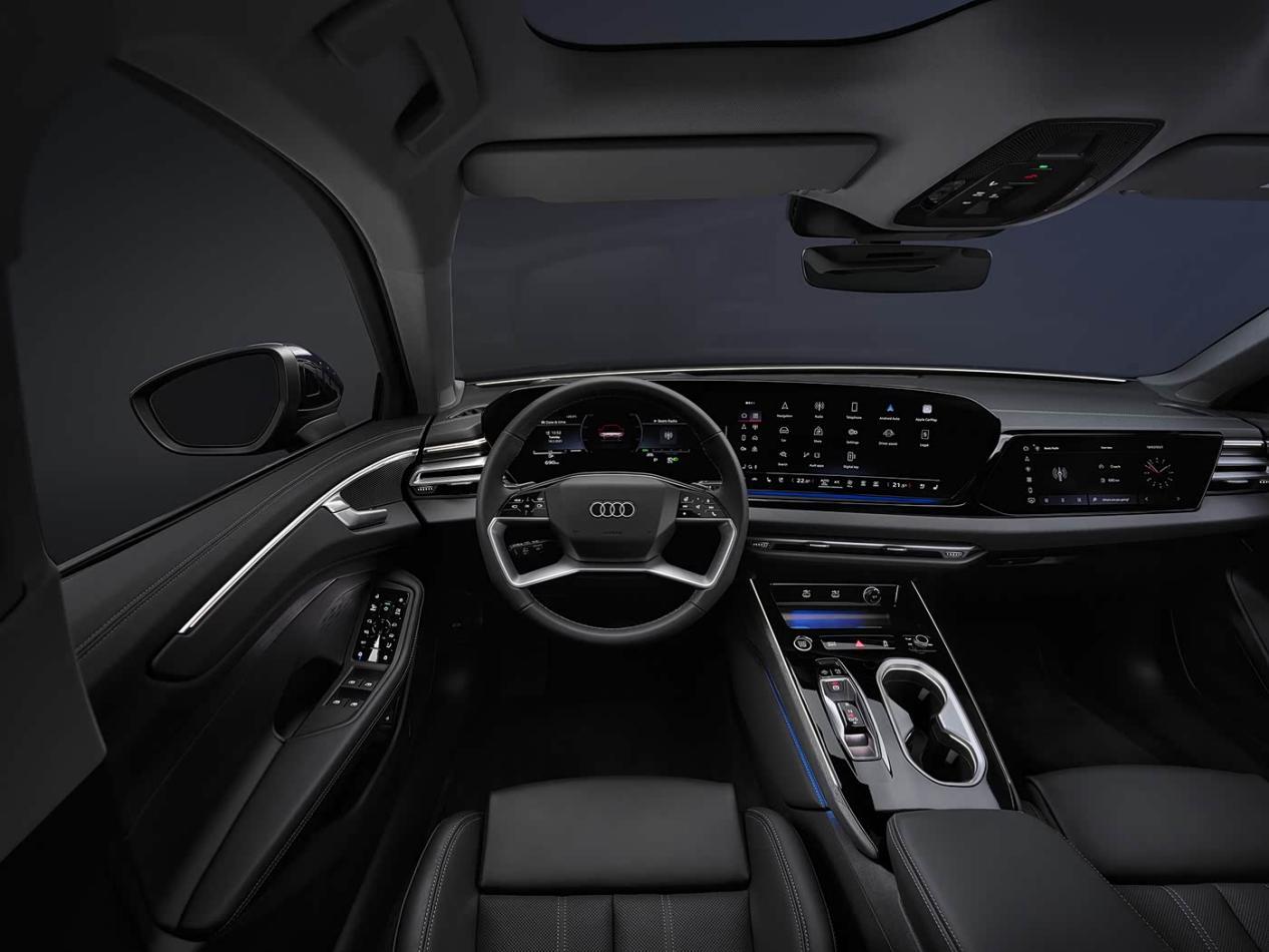 新一代奥迪A6L的内饰细节并未曝光,我们参考海外版来简单聊一聊。车内大面积被皮质材料包覆,在门板内侧、中控台,以及中控岛台区域和方向盘等处,还运用了银色元素,与本色内饰形成了差异化视觉效果。新一代奥迪A6L海外版的方向盘保留了大量实体物理按键,方便驾驶者盲操,换挡方式采用按键式换挡机构,操控便捷,中控岛台配备了双杯架,可放些水杯或矿泉水之类的物品。11.9英寸仪表盘和14.9中控屏采用连体式设计,副驾前方还配备了10.9英寸的副驾娱乐屏,还有13.1英寸的HUD抬头显示系统,它们的同时出现,为新一代奥迪A6L营造了更多的科技氛围,不但丰富了驾乘人员的娱乐生活,还提升了实用性。