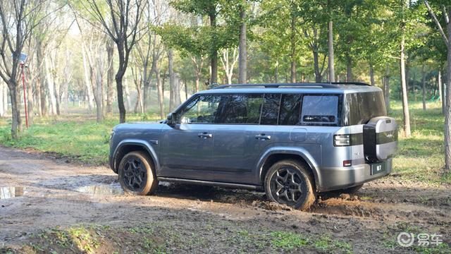 在泥泞路段,深蓝G318凭借240mm离地间隙和27°接近角全程未触底,泥浆仅附着至轮眉下沿;钛7的离地间隙为210mm,接近角24°也略小于深蓝G318,这就导致了前保险杠底部多次与泥面接触。关键脱困场景中,深蓝G318的双差速锁系统(中央无级差速锁+磁吸式机械差速锁)在右后轮陷入泥坑时,极速锁止差速器,将扭矩100%传递至左前轮,让车辆稳定速度脱困;钛7因无差速锁,右后轮持续空转导致动力流失,通过时长较深蓝G318多一些。