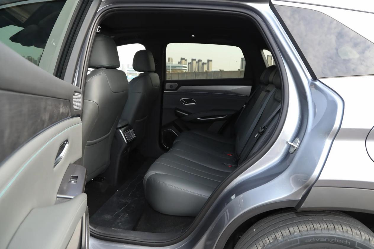 可以看出,从车身长宽高到轴距,长安启源Q07都有更多优势。这也反应在了内部实际空间,如长安启源Q07后排拥有明显更宽适的腿部空间,1238mm后排层高同样优于宋L DM-i。