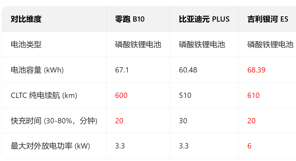 首先咱们对比一下价格:零跑 B10 官方指导价 9.98-12.98 万元,吉利银河 E5 官方指导价 10.98-14.58 万元,比亚迪元 PLUS 官方指导价 11.58-14.58 万元。这三款车的价格定位相近,但入手门槛方面,零跑 B10 是较低的 —— 比如仅需 9.98 万元裸车价,就能入手其低配车型;若追求更高配置,其顶配车型也仅需 12.98 万元。从价格上看,确实,零跑 B10 更适合一些预算有限的家庭用户。