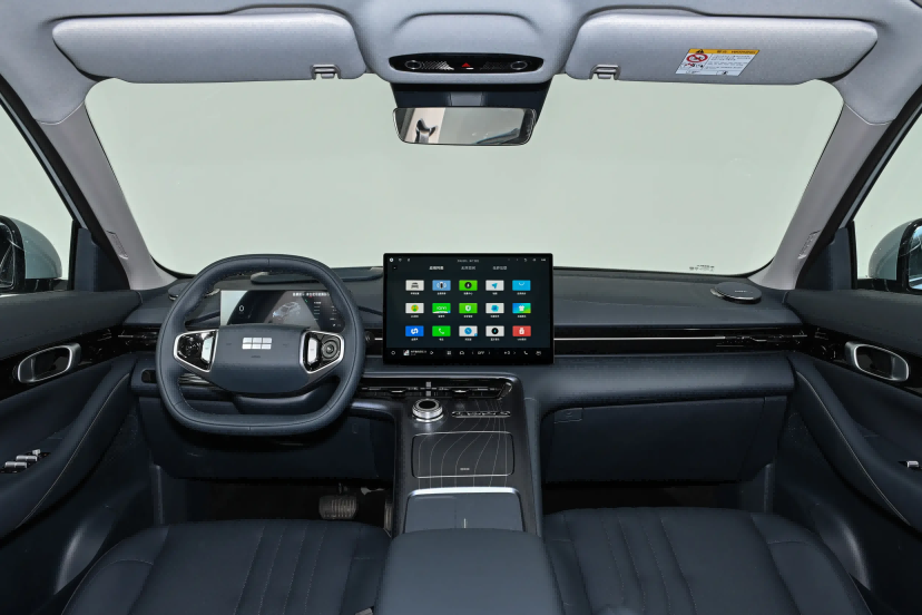 进入车内 其实这三款车都是采用了传统得新能源SUV的设计风格,只是在一些细节有所不同。零跑 B10 采用了传统的新能源汽车设计风格,保留了仪表屏设计;而且中控台采用悬浮式设计,这样更方便在下层放置物品和插充电线。当然,它还配备了两个可折叠杯架,整体内饰布局偏向实用风格。