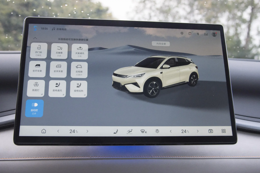 比亚迪元 PLUS 的内饰采用了较多曲线的设计风格,整体内饰风格属于比较个性化的类型。比如独特的门把手和个性化的空调出风口,都是其鲜明特点。不过在内饰的布局上,它和零跑 B10、吉利银河 E5 一样,采用了独立的仪表盘和独立的中控横屏布局 —— 毕竟这也是近几年较为流行的设计风格。