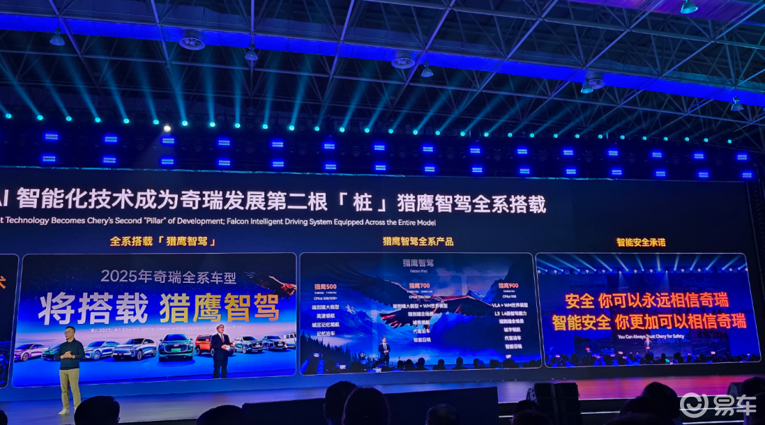 值得注意的是,奇瑞在发布会上强调,猎鹰智驾的不同版本之间并不是割裂的,而是 L2 到 L4 技术同源的统一架构。这意味着无论是高速辅助驾驶、城区 NOA,还是未来的 L4 自动驾驶,底层都建立在同一套系统方案、同一模型体系和同一数据闭环之上。
