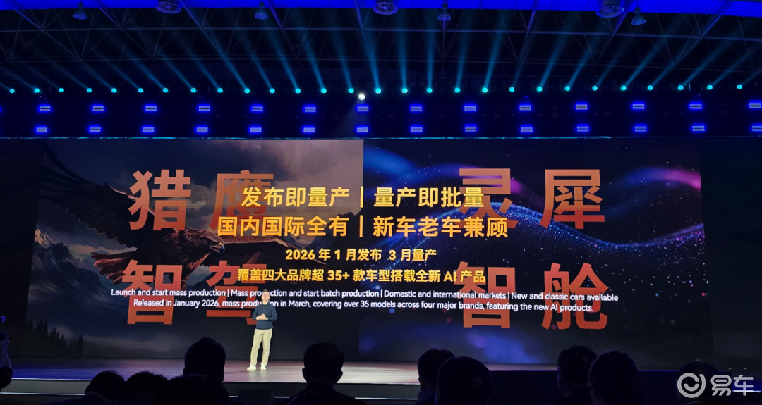 奇瑞汽车股份有限公司执行副总裁李学用在 AI 之夜上表示,灵犀座舱会在 2026 年一季度全面上车,全品牌全系主力车型搭载,猎鹰 500/700 普及搭载,未来上市的所有增混车型的纯电续航都会在 200 公里以上。