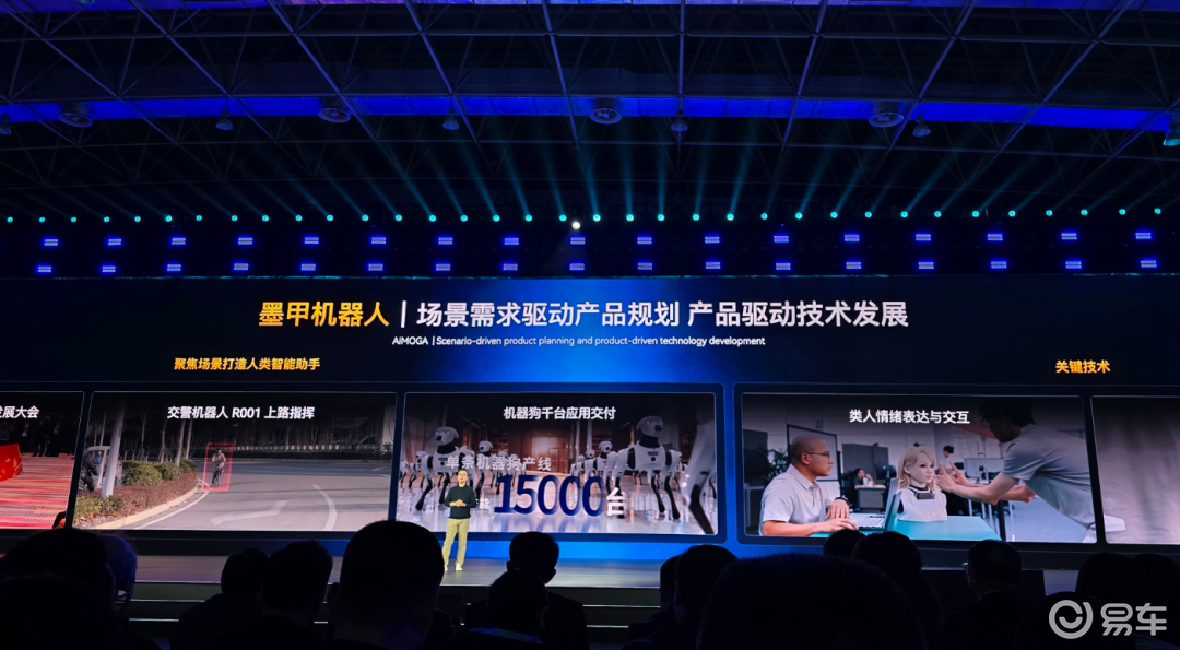在这场 AI 之夜上,一个很直观的变化是:站在舞台中央、承担主持和互动角色的,已经不再是人类,而是奇瑞旗下的人形机器人「墨茵」。场外的技术展示区,人形机器人、机器狗也吸引了不少目光。