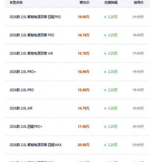 有网友直接算了笔账,2026款两驱PRO版,优惠后15.98万元。