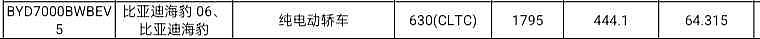 新款海豹06 EV此前申报了激光雷达版本,新车将针对外观进行调整,长宽高分别为4870/1890/1495mm,轴距为2820mm。搭载120kW和240kW两款电机,匹配64.315kWh电池,续航里程提升至630km。海豹06 MAX与新款海豹06 EV在电池和续航方面保持一致,匹配64.315kWh,纯电续航630km。