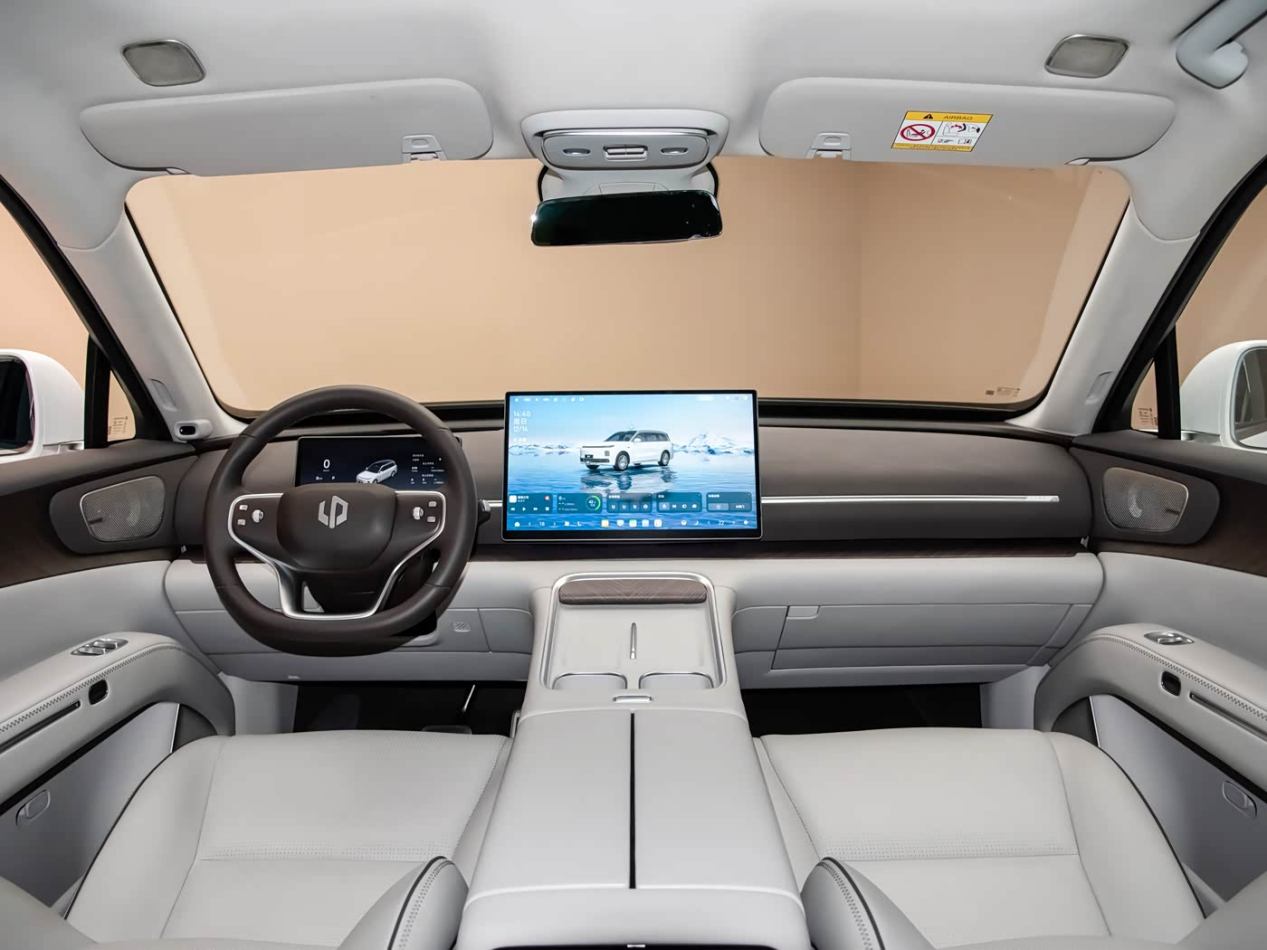 智能交互是D19的另一大亮点,车辆构建了"五屏三维空间立体交互"系统,核心包括60英寸的高亮全天候AR-HUD抬头显示,以及由10.25英寸全液晶仪表、17.3英寸中控屏、6英寸后排多功能控制屏和21.4英寸3K分辨率电动娱乐屏组成的多屏矩阵,娱乐系统由高通骁龙8295芯片驱动。此外,88%的超高得房率、8.1升车载冰箱等配置,进一步强化了其全能旗舰定位。