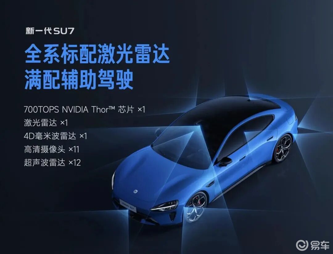 最后来看看新能源汽车最重要的智能化。上一代SU7的辅助驾驶并不算好用,所以新一代SU7干脆标配了激光雷达、4D毫米波雷达、700TOPS辅助驾驶算力、小米HAD端到端辅助驾驶系统等功能,记忆泊车、循迹倒车、匝道自动驶入(出)、信号灯识别、远程召唤等功能也随之全系标配。新车还升级了“小米XLA认知大模型”,引入多模态输入,并结合具身基座模型,提升辅助驾驶系统在决策层的处理能力。此外,雷军介绍称,新一代SU7在车身颜色、轮毂样式、座椅舒适性、小爱同学等多个方面进行了提升。