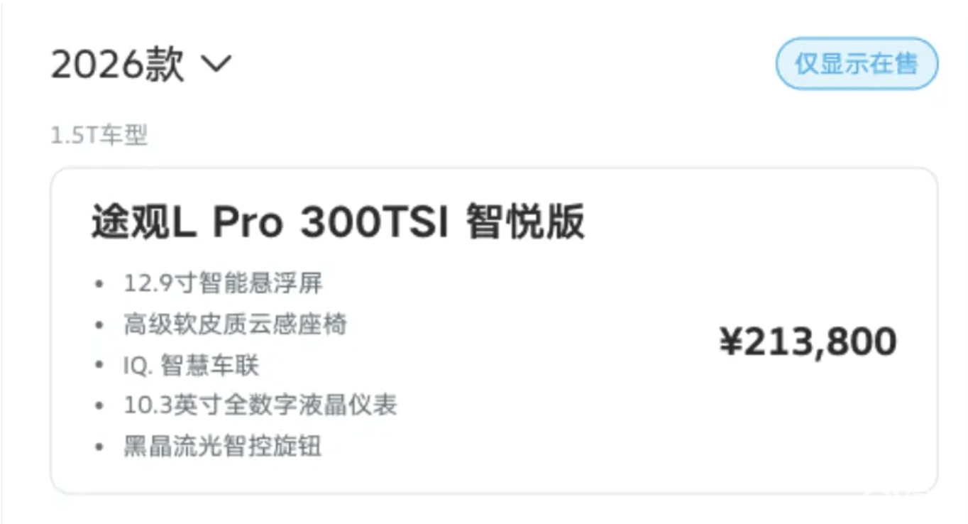 大众途观L Pro新增车型上市!搭载1.5T发动机