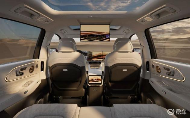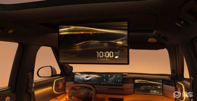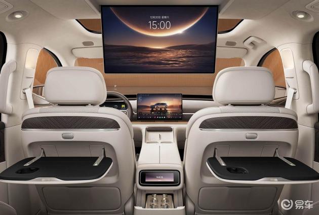 内饰采用简约设计,真皮方向盘集成加热、四向电动调节功能,电子怀挡设计贴合当下潮流。二排零重力座椅支持120度零压躺姿,三排座椅靠背可无级调节,配备座椅加热等功能,兼顾舒适性与实用性,同时还提供智能香氛、冷暖冰箱等配置,提升豪华感。