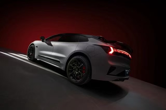 侧面造型方面,车身采用了猎装车风格,车顶带着明显的弧度,而且营造出了悬浮式车顶,线条感喜爱你的比较干练;腰线采用了分段式设计,点缀出了车身侧面的层次感;门把手则是弹出式造型,能够起到降低风阻的作用;轮眉和侧裙部分设计有隆起的筋线,有着一定的肌肉感;轮毂采用了多幅式造型,搭配红色卡钳进一步增强了运动感。