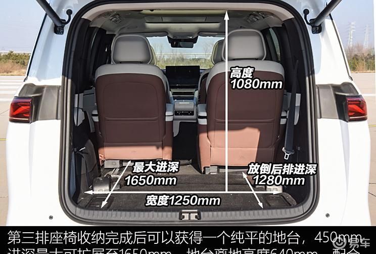 在空间设计上,比亚迪夏表现尤为出色。前排座椅高度达到1010毫米,提供了充足的头部空间,座椅采用Nappa真皮材质,既保证了舒适性也提供了良好的支撑。第二排的两个独立座椅同样采用Nappa真皮,配备电动腿托和长滑轨,为乘客提供了极佳的舒适体验。第三排座椅在标准状态下,腿部空间为840毫米,座垫长度为500毫米,足以舒适地容纳成年人。此外,第三排座椅还支持电动调节靠背,进一步提升了乘坐舒适度。